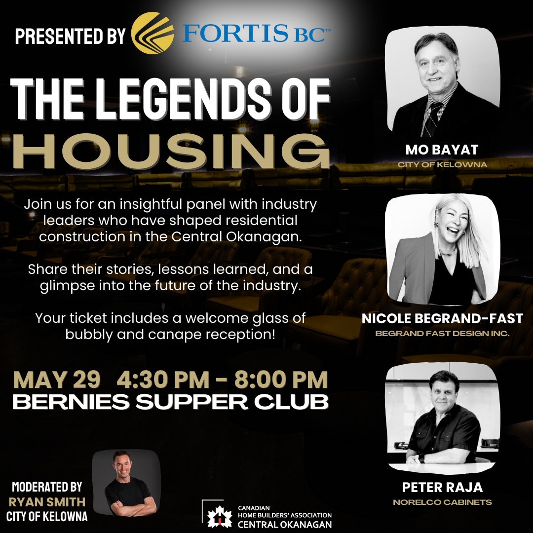 Legends of Housing is an annual event featuring three influential industry leaders who have significantly impacted the residential construction industry in the Central Okanagan.