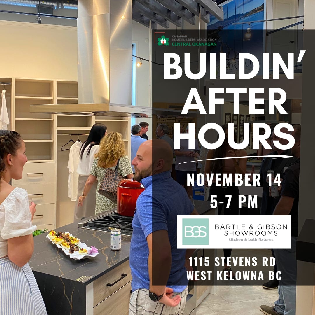 Join the Canadian Home Builders' Association - Central Okanagan and Bartle & Gibson for our monthly networking event, Buildin' After Hours. Join member professionals from the home building industry to build meaningful connections, exchange ideas, and explore collaborative opportunities.