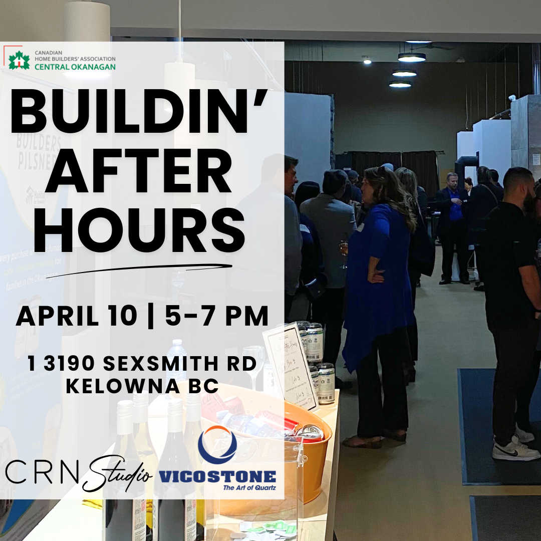 Join the Canadian Home Builders' Association - Central Okanagan and Vicostone Canada at CRN Studio for our monthly networking event, Buildin ' After Hours. Join member professionals from the home building industry to build meaningful connections, exchange ideas, and explore collaborative opportunities. This event provides a platform for networking, knowledge sharing, and building long-lasting relationships in an interactive and relaxed environment. Open to members and non-members. Don't miss this chance for a night out together with light appetizers. Your ticket includes one alcoholic beverage. *All tickets are final sale for this event.