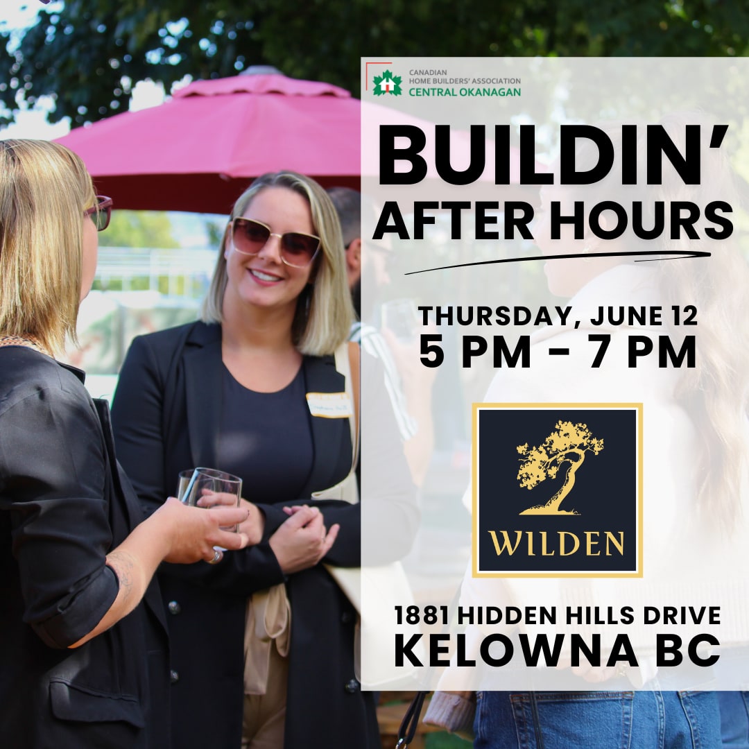 Join the Canadian Home Builders' Association - Central Okanagan and Wilden Group for our monthly networking event, Buildin' After Hours. Join member professionals from the home building industry to build meaningful connections, exchange ideas, and explore collaborative opportunities.